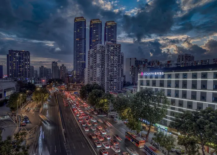Con vistas a la ciudad, el Echarm International Hotel Nanzhou Metro Station Branch Cantón, de 4 estrellas, está a unos 7 km del Parque de atracciones Chimelong Paradise en Cantón. El hotel también incluye un aparcamiento.